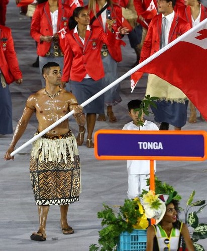 Tonga: Pita Taufatofua, a Taekwondo athlete, was Tonga's flag bearer. He's half Tongan and part Australian/British. And he's very muscle-y and hunk-y hunk-y. He lives in Brisbane, Australia and...He also STOLE MY HEART. Wearing almost nothing. God Bless Tonga. And Pita.